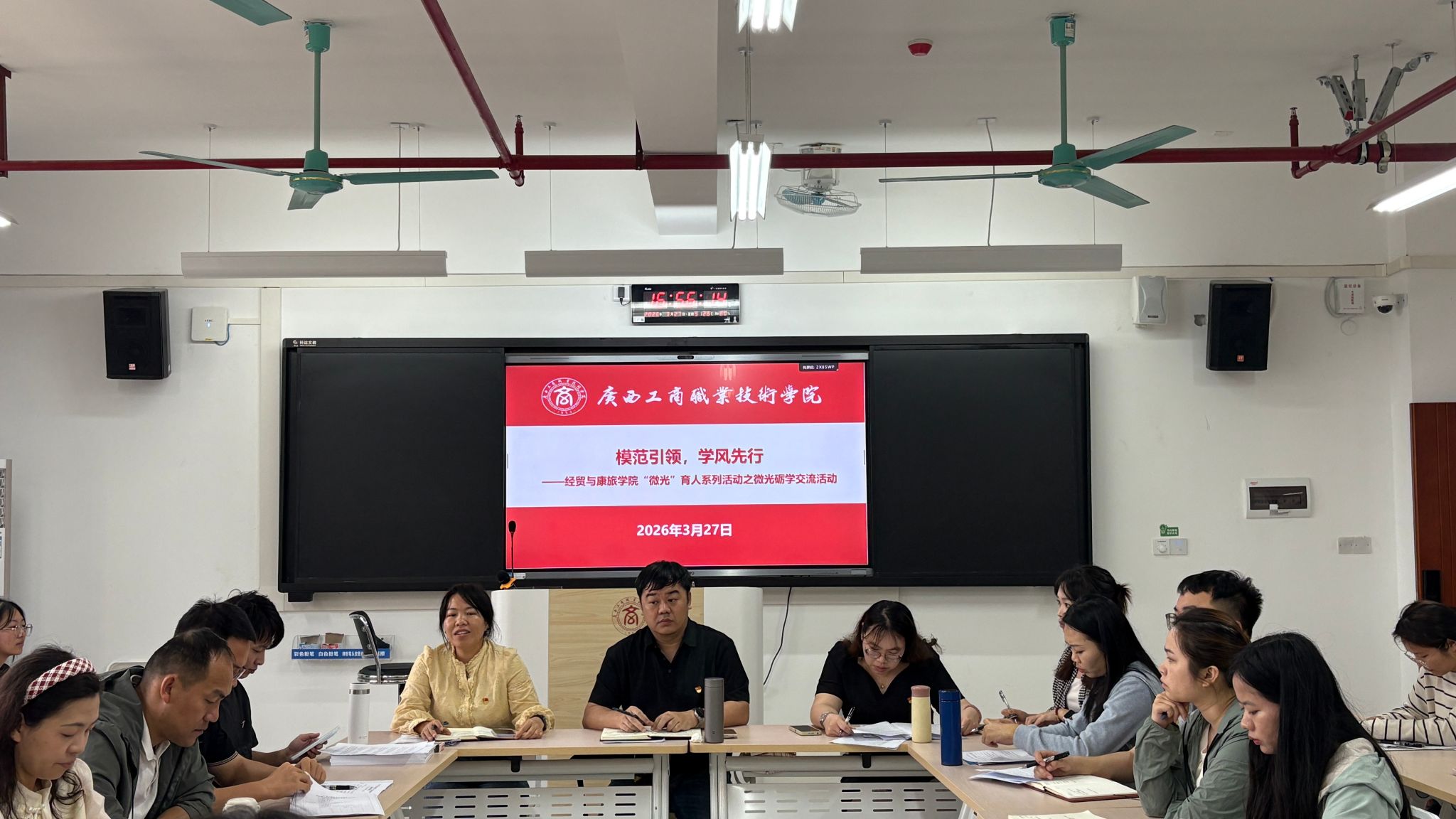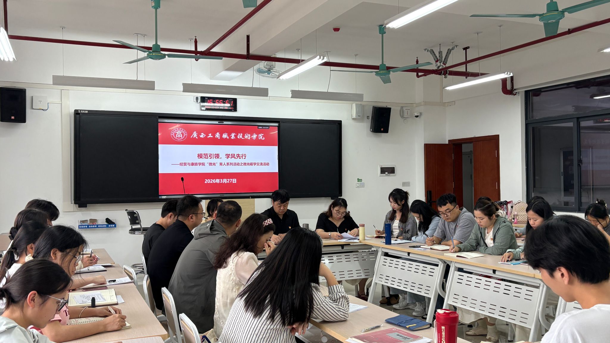为扎实推进学风建设走深走实,充分发挥师生党员的先锋模范作用,凝聚共建优良学风的强大合力,3月27日,经贸与康旅学院开展“模范引领,学风先行”——“微光”育人系列活动之微光励学交流活动。本次活动由学院副院长韦剑思主持并作动员讲话。学院党总支书记陈宇宁同志莅临指导,学院学生第一、第二党支部师生党员及学生代表齐聚一堂,整场活动有序开展。